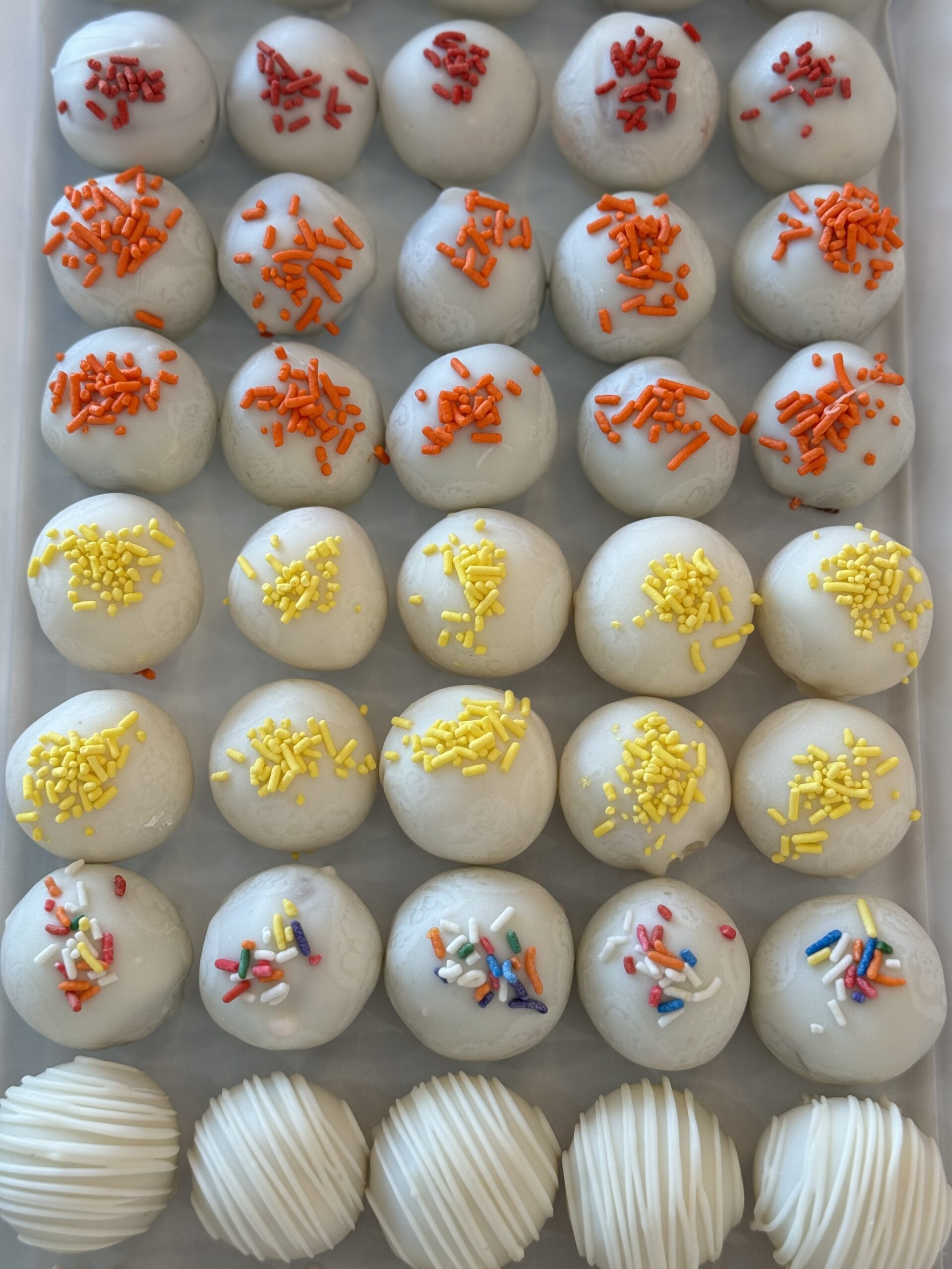 J.Rae’s famous cake ball recipe is sure to put a smile on your face. Cake balls are the perfect bites sized cake dipped in a hardened chocolate icing.